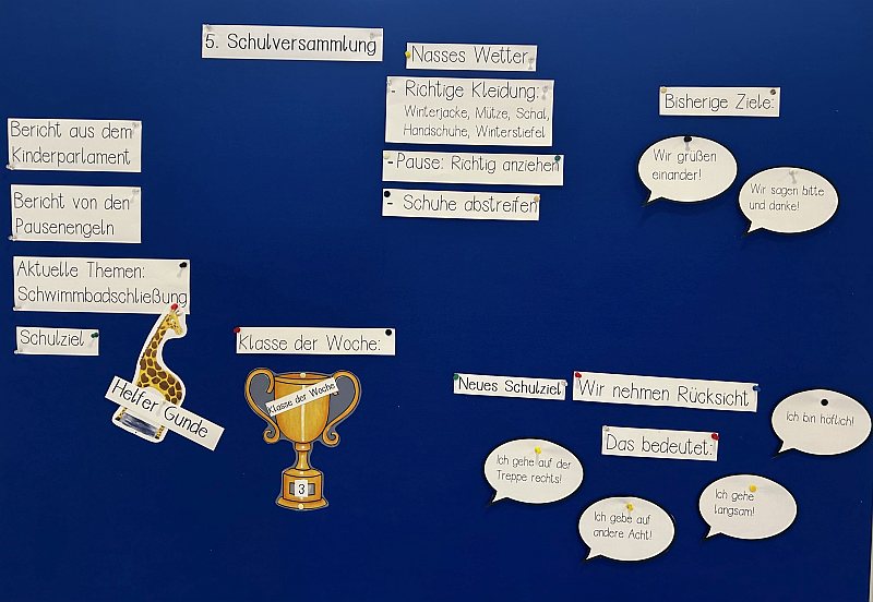 In den ersten drei Wochen zeigt sich jedoch, dass wir in der Umsetzung noch wachsen können. Deshalb werden wir weiterhin gemeinsam daran arbeiten, aufeinander Acht zu geben, freundlich zu sprechen und uns im Schulhaus rücksichtsvoll zu verhalten.