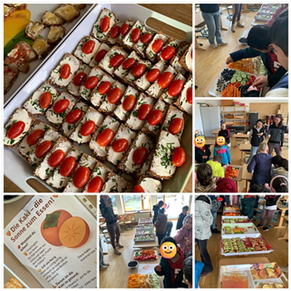 Mit viel Liebe werden frische Zutaten vorbereitet – darunter abwechslungsreiches Obst und Gemüse. Jede „Gesunde Pause“ steht dabei eine besondere „Zutat der Woche“ im Mittelpunkt. Diese wird den Kindern nicht nur zum Probieren angeboten, sondern auch auf einem Infoplakat kindgerecht vorgestellt. So lernen die Kinder spielerisch, wie lecker und wichtig gesunde Ernährung ist.