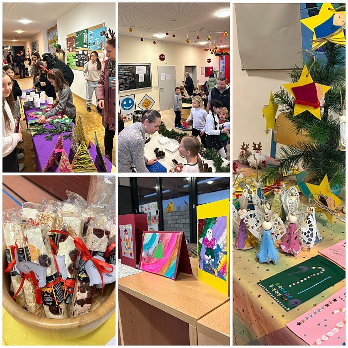 Im Anschluss lud der Weihnachtsbasar im Schulgebäude zum Verweilen ein. Dort wurden die von den Kindern gestalteten Basteleien verkauft. In der weihnachtlich geschmückten Aula sorgte ein Elterncafé für gemütliche Atmosphäre. Der Förderverein bot zudem Punsch und Lebkuchen an. Die Weihnachtsfeier und der Basar bildeten einen gelungenen und besinnlichen Abschluss der Adventszeit an der Schule.